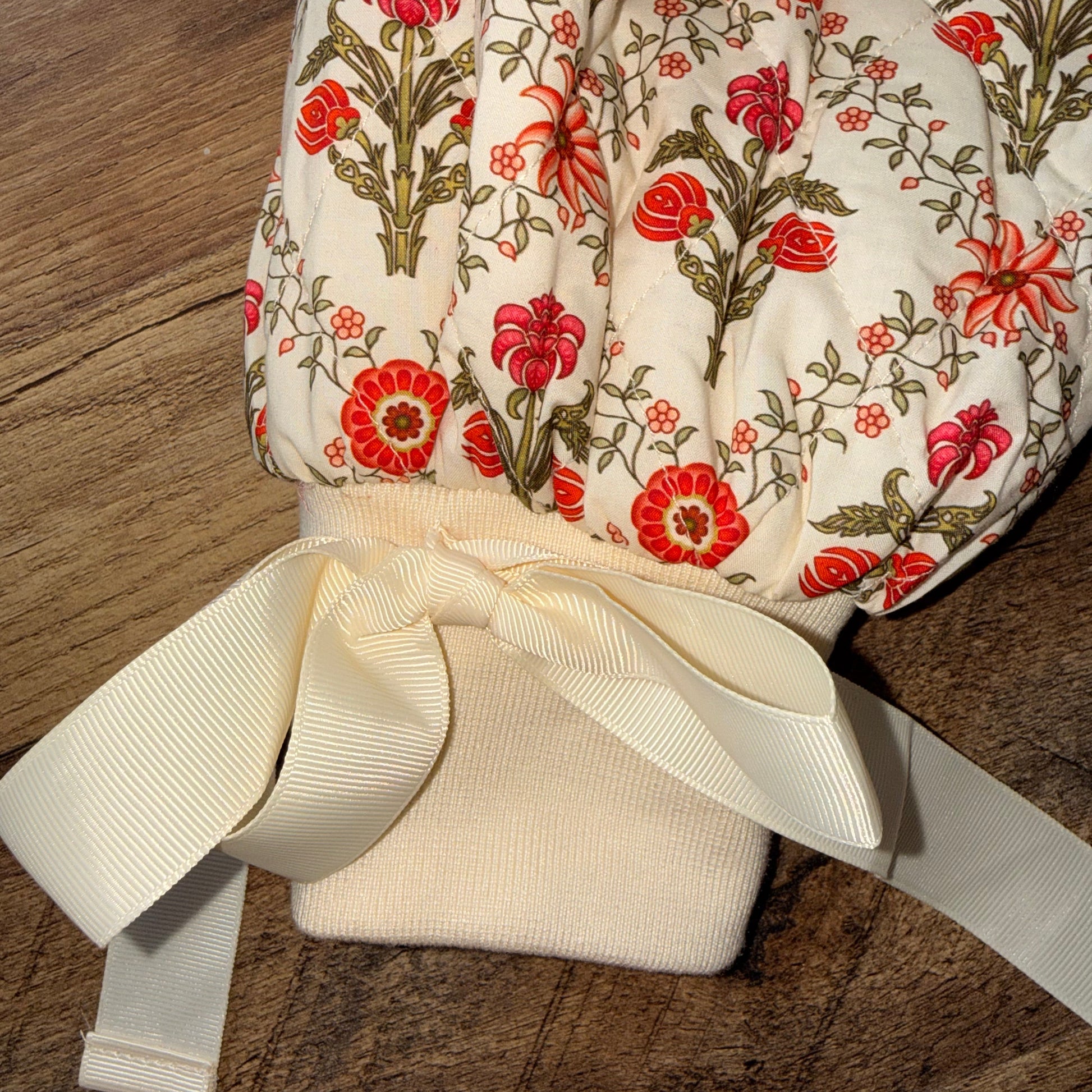 Cozy up in style with the Ami Quilted Jacket, your new go-to for chilly days! This playful puffer features a charming floral print, a stand collar, and snap buttons for easy wear. The drop shoulder balloon sleeves with tying ribbon cuffs add a flirty touch, while contrast binding highlights the jacket’s edges and roomy patch pockets keep essentials close. Fully lined for warmth, it’s the perfect mix of comfort and romance to brighten your wardrobe.