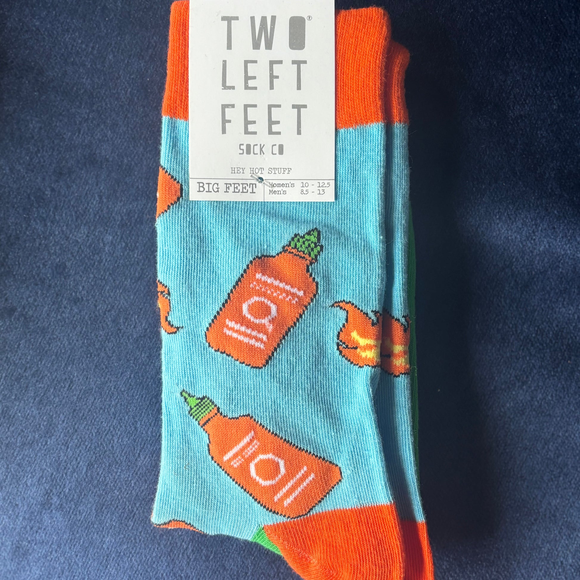 Step up your sock game with FUNNY SOCKS by TWO LEFT FEET. These socks will add a touch of humor to your everyday wardrobe. Made with comfortable material and a bold design, these socks are sure to be a conversation starter. Perfect gift for anyone with a fun personality! (socks may induce laughter)